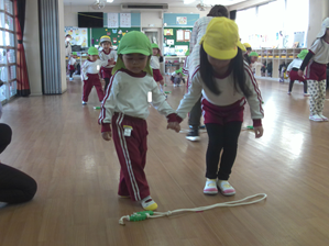 今月下旬の縄跳び大会に向けて、全体練習をしました。 みんな、自分の目標に向けて頑張っていました。 冬休みの練習の成果が出ている子どもも多く、さらに高い目標に変えていました(*^_^*) 年少少つぼみ組さんには、年長ゆり組さんが縄遊びを教えてくれました♫