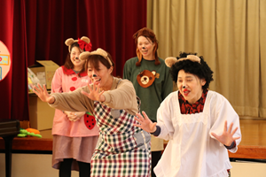 お友達のお母さんや自分のお母さんが、ペープサートを動かしたり、ナレーターやピアノ演奏などなど