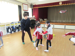 さくら組さんは、跳べるようになる子が増えて、ケンケンや後ろ回しもできるようになりました。