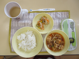 ごはん 厚揚げのチリソース煮 さっぱり和え