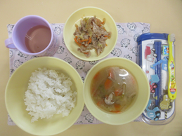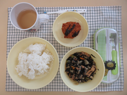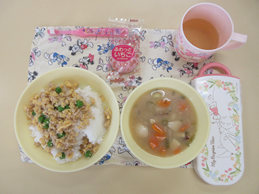ごはん・大豆の五目煮・鮭そぼろふりかけ