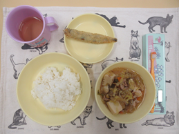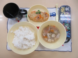 鶏ごぼうごはん 豆乳入りみそ汁 ミニおはぎ