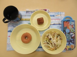 卵とじうどん 野菜いろいろ肉団子 さつま芋焼きドーナツ