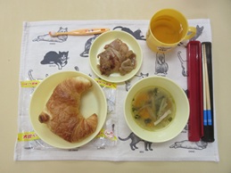 クロワッサン 鶏のアップルジンジャー焼き トムヤムクンスープ