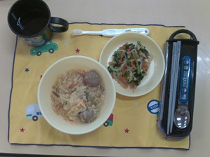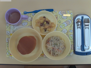 ロールパン・スープスパゲティ・もみの木ハンバーグ・クリスマスゼリー