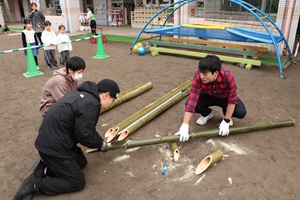 冬休みも、園庭に子どもたちの元気な声が響いています~。 さて、20日(土)に父ちゃんランドの方々が、門松を作ってくださいました! 父ちゃんランドの会長さんが、切って運んでくださった竹をみんなで加工するところから始まり、 1時間半くらいであっという間に仕上がったようですよ。さすが!! お忙しい中、本当にありがとうございました。良い年を迎えられます♪ みなさんも […]